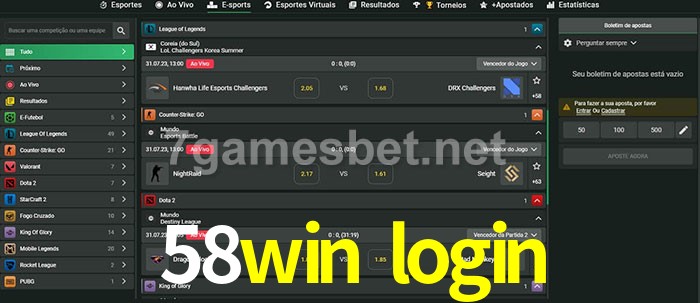 A aposta 58win login oferece aos jogadores a experiência mais conveniente de apostas em eSports!